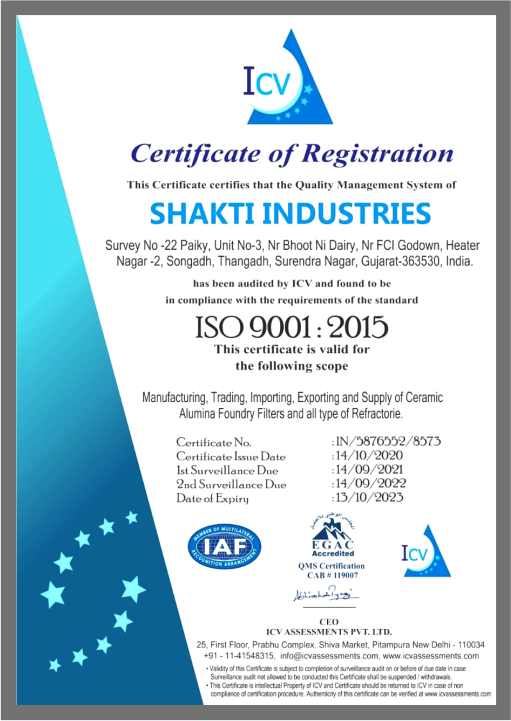 Shakti industries is specialized in manufacturing and supply of ceramic foundry filter and refractory.